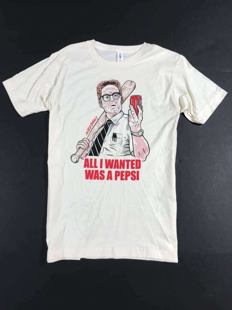 Image screen printed by hand on an off-white natural 100% cotton tee.